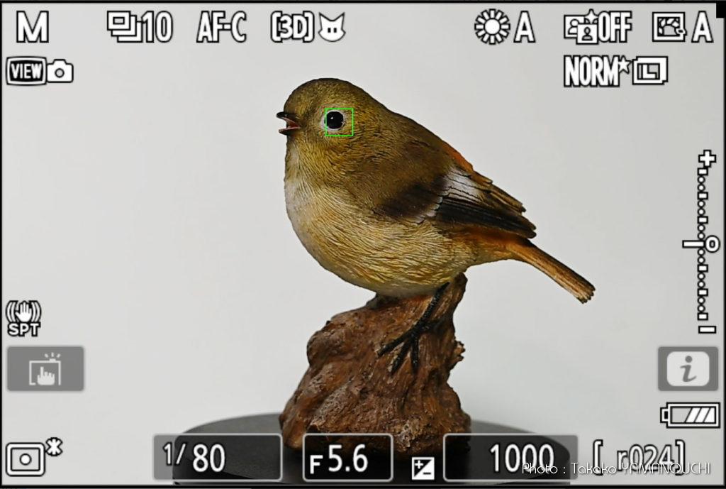 Z50のAFには動物の検出機能がありません。野鳥のピント合わせは、目が写っている以上目に合わせるのが基本ですが、Z50で撮影する場合はフォーカスポイントを目に合わせ、シャッターボタンを半押ししてピントが合ったら全押しして撮影するという動作になります。野鳥はじっとしていてはくれないので、フォーカスポイントを移動させたりしている間にもういなくなっていることが多々あります。そんなことでずっと悔しい思いをしてきました。